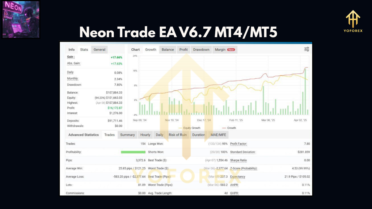 Sick of flashy EAs that promise the moon but end up bleeding your account dry? You’re not alone… Neon Trade EA V6.7 is here to flip the script. Powered by machine learning and hosted on ForexFactory.cc, this YoForex-branded powerhouse takes a truly hands-off approach. No more endless parameter tweaking or guesswork—your EA pulls its latest, server-optimized settings automatically. Whether you’re a cautious trader looking for steady, year-plus growth or a risk-taker wanting to push a smaller deposit with martingale, Neon Trade’s got you covered—long-term, realistic profits with minimal drawdowns.