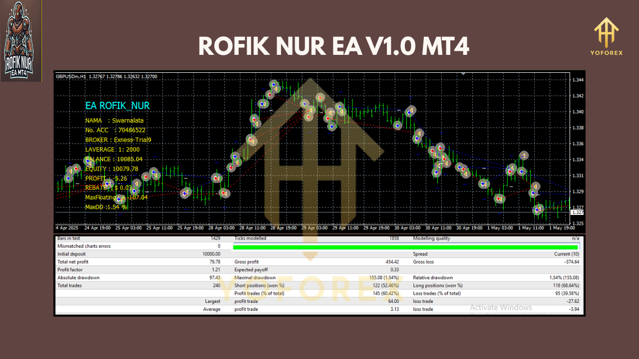 Rofik Nur EA v1.0 MT4 is engineered to analyze real-time market data and execute trades based on a proprietary algorithm combining moving averages, momentum oscillators, and volatility filters. Whether you’re a day trader or swing trader, this EA adapts to all major currency pairs and timeframes. YoForex’s developers have stress-tested it on 10 years of historical data and monitored a live account for three months, so you know it’s been through its paces.