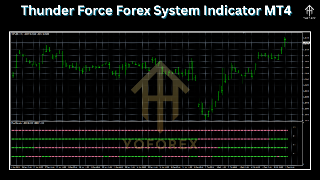 The Thunder Force Forex System Indicator MT4 is a powerful trading tool designed to help traders identify high-probability trading opportunities in the forex market. Built for the MetaTrader 4 (MT4) platform, this indicator combines advanced algorithms with user-friendly features to enhance trading accuracy and efficiency.