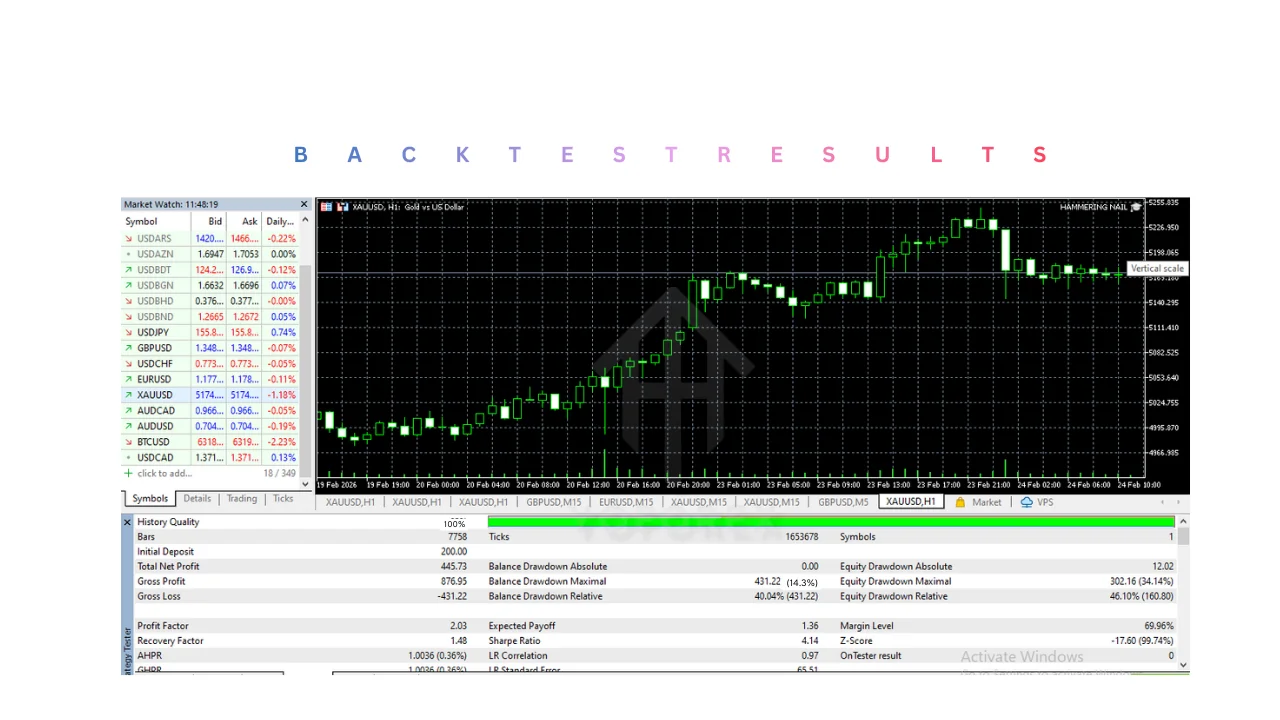 - Testing Phase: Run Strategy Tester with 99% modeling quality; backtest 2020-2023 data to see it hammer 65% winners.
