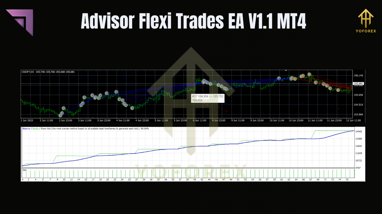 With Advisor Flexi Trades EA V1.1, you get a calm, professional system that adapts to market conditions, doesn't overtrade, and avoids dangerous strategies like martingale or grids.