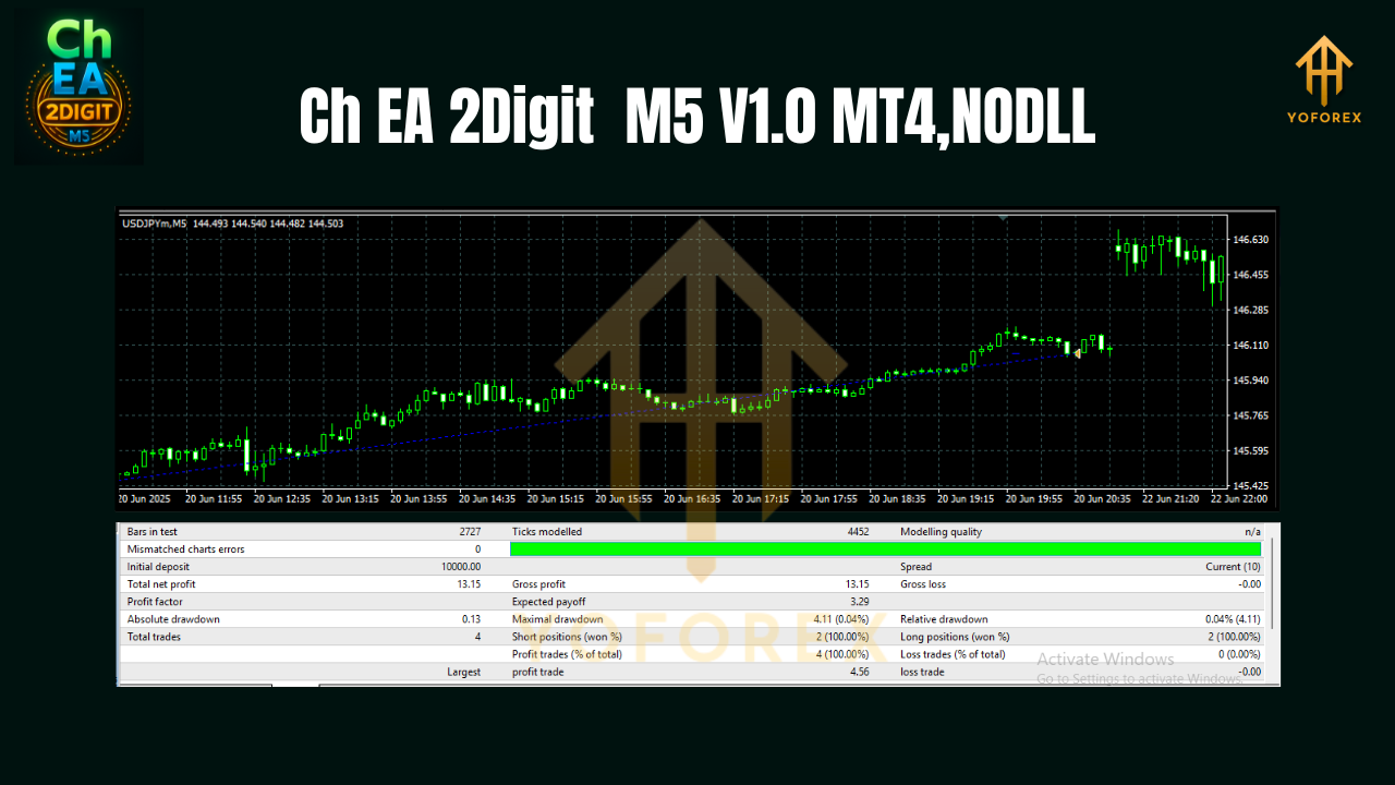 Designed specifically for scalping, Ch EA 2Digit M5 V1.0 is programmed to open and close trades rapidly, making it an excellent choice for traders who focus on small, quick wins in a highly volatile market. - High-Speed Execution