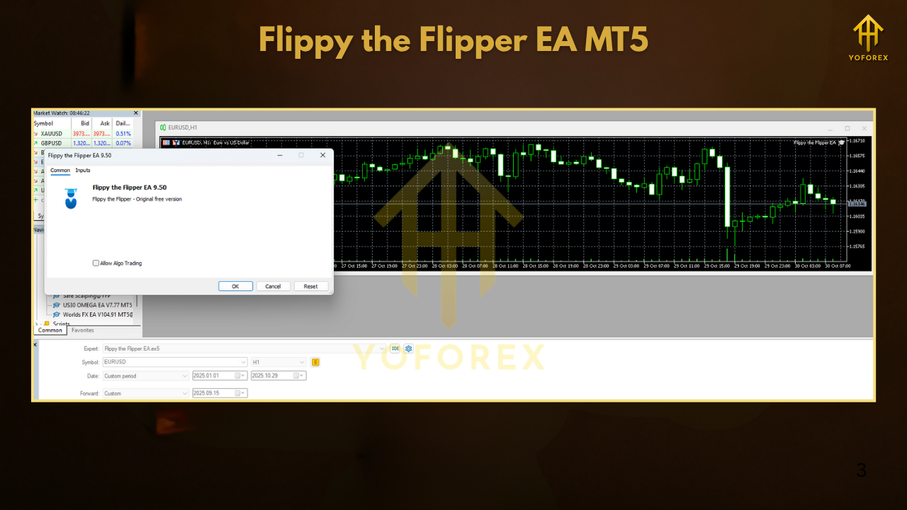 The live performance for Flippy the Flipper EA MT5 has matched or exceeded backtest expectations. YoForex tested the EA on EURUSD, GBPUSD, and AUDUSD pairs, and found that the EA consistently captures reversals during major market moves while adhering to the set risk parameters.