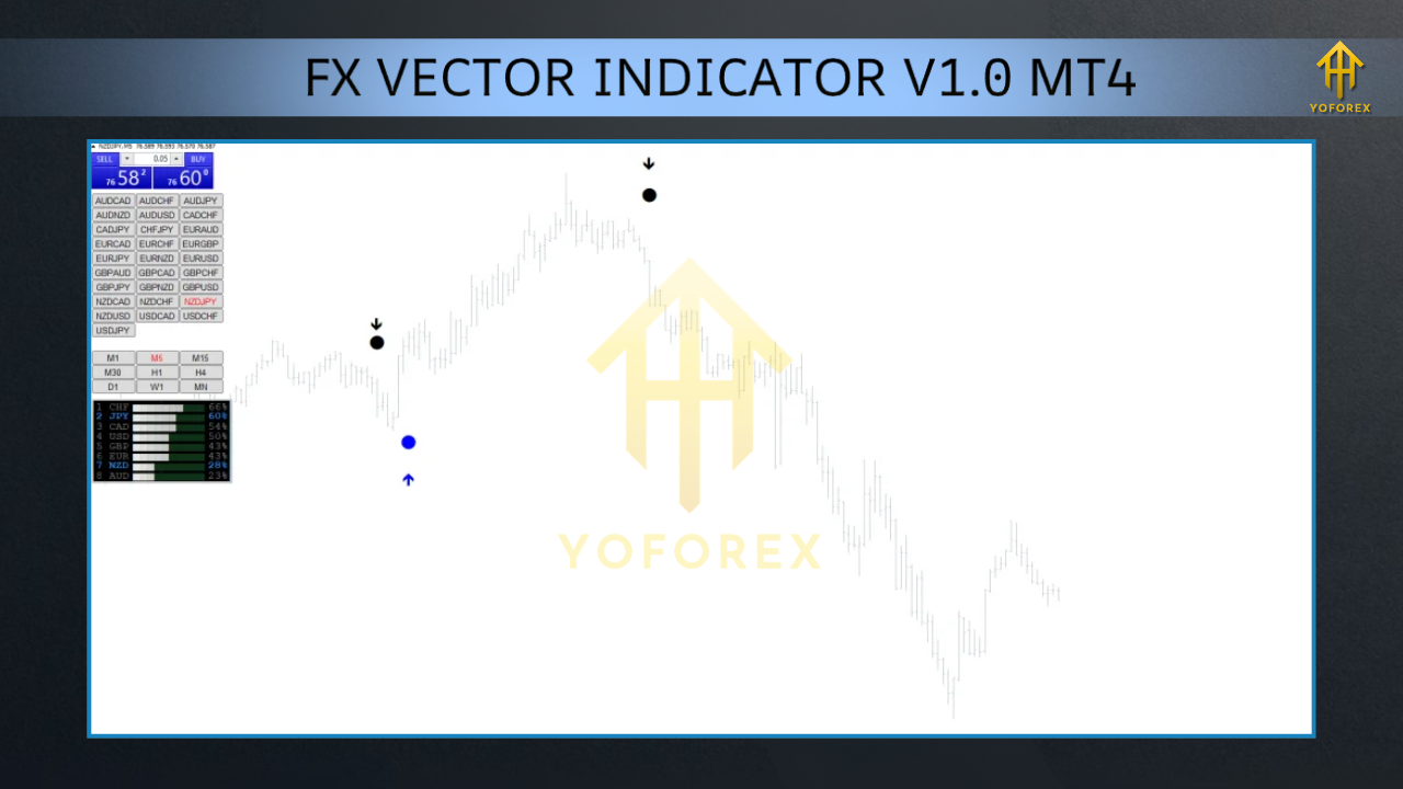 YoForex’s back-testing shows it works reliably across major forex pairs (EURUSD, GBPUSD, USDJPY) as well as commodities like XAUUSD. Best performance comes on M15 to H4 charts, where the balance between false signals and accuracy is strongest.