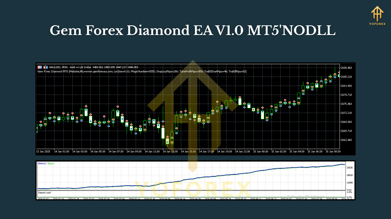 If you’ve been hopping from one over-promised robot to another, you’re not alone. Too many EAs depend on luck, martingale, or random “set & pray” logic—until a news spike wipes out weeks of grind. Gem Forex Diamond EA V1.0 MT5 is built for the opposite vibe: clear entries, defined risk, and fast execution across XAUUSD, EURUSD, and GBPUSD on M5, M15, and M30. It’s designed to be nimble enough for intraday action yet disciplined enough to respect your drawdown rules—coz longevity > lottery, right?