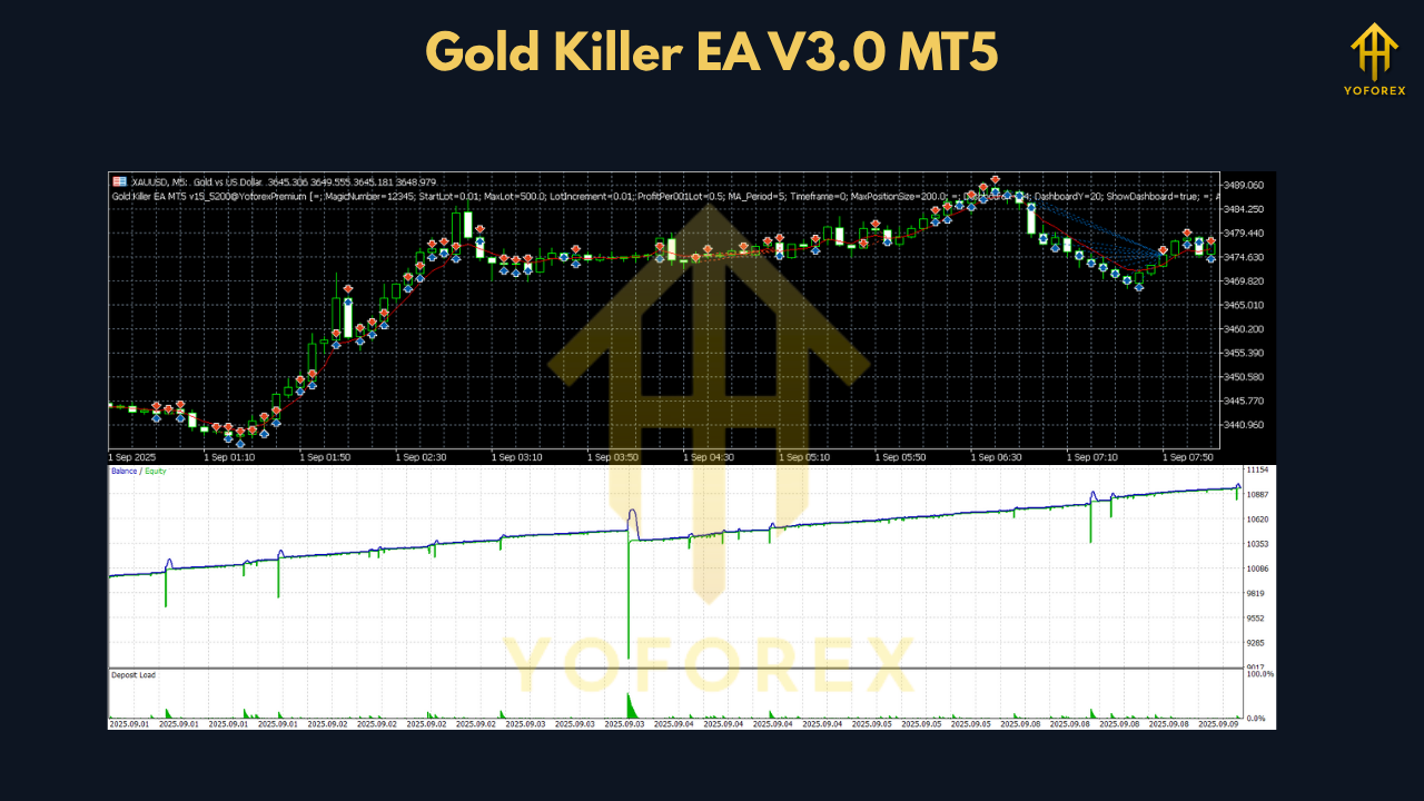 In the evolving landscape of algorithmic trading, Gold Killer EA V3.0 for MT5 stands out as a solid solution for those focused on the gold market. With its wide range of features, strong adaptability, and fully automated design, it offers traders a reliable edge in the volatile world of XAUUSD.