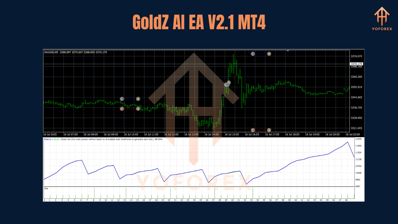 Gold moves fast, and missing entries means missing profits. The GoldZ AI EA V2.1 MT4 gives you an AI-powered scalping system for XAUUSD on M5, with low capital requirements and safe money management.