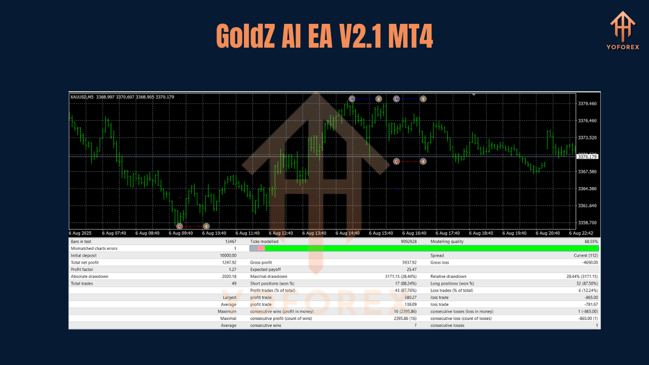 That’s where the GoldZ AI EA V2.1 MT4 comes in. Built specifically for XAUUSD on the M5 timeframe, this expert advisor uses artificial intelligence–powered algorithms to scalp gold with precision.