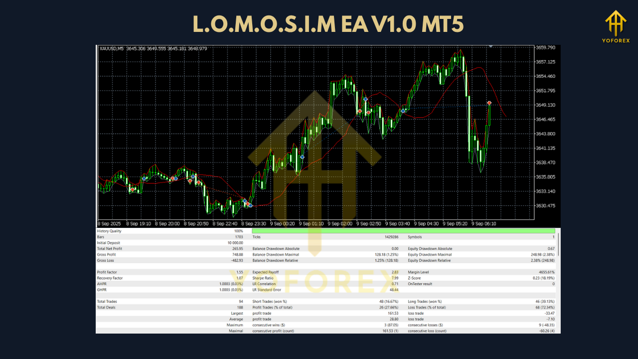 L.O.M.O.S.I.M EA V1.0 for MT5 is more than just an Expert Advisor – it’s a comprehensive trading solution that adapts to your style, your assets, and your timeframe. Its flexible architecture, robust performance, and customizable risk controls make it one of the best MT5 EAs available for traders who demand both safety and profitability.