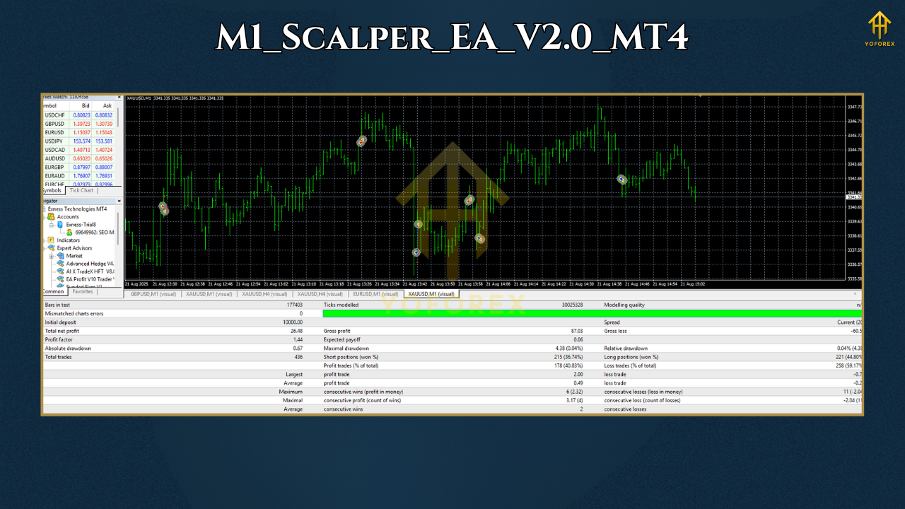 We know numbers speak louder than promises. That’s why the YoForex team tested M1 Scalper EA V2 over multiple months of tick data with realistic spreads and slippage.