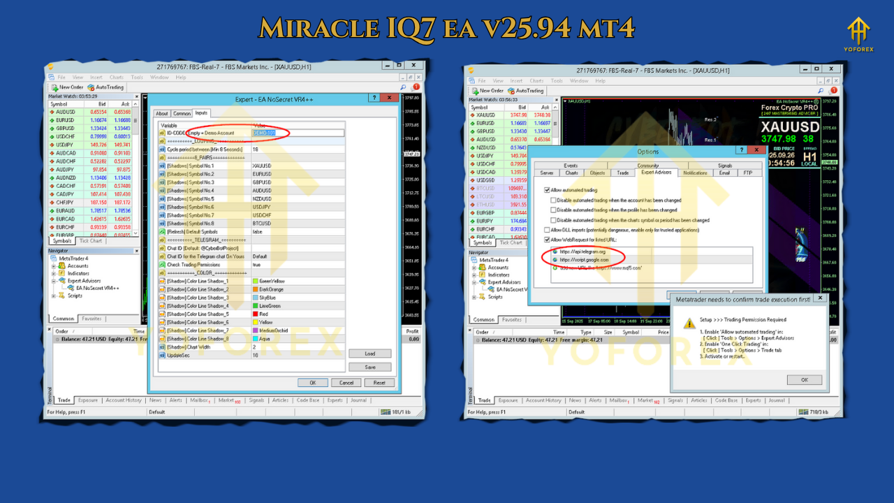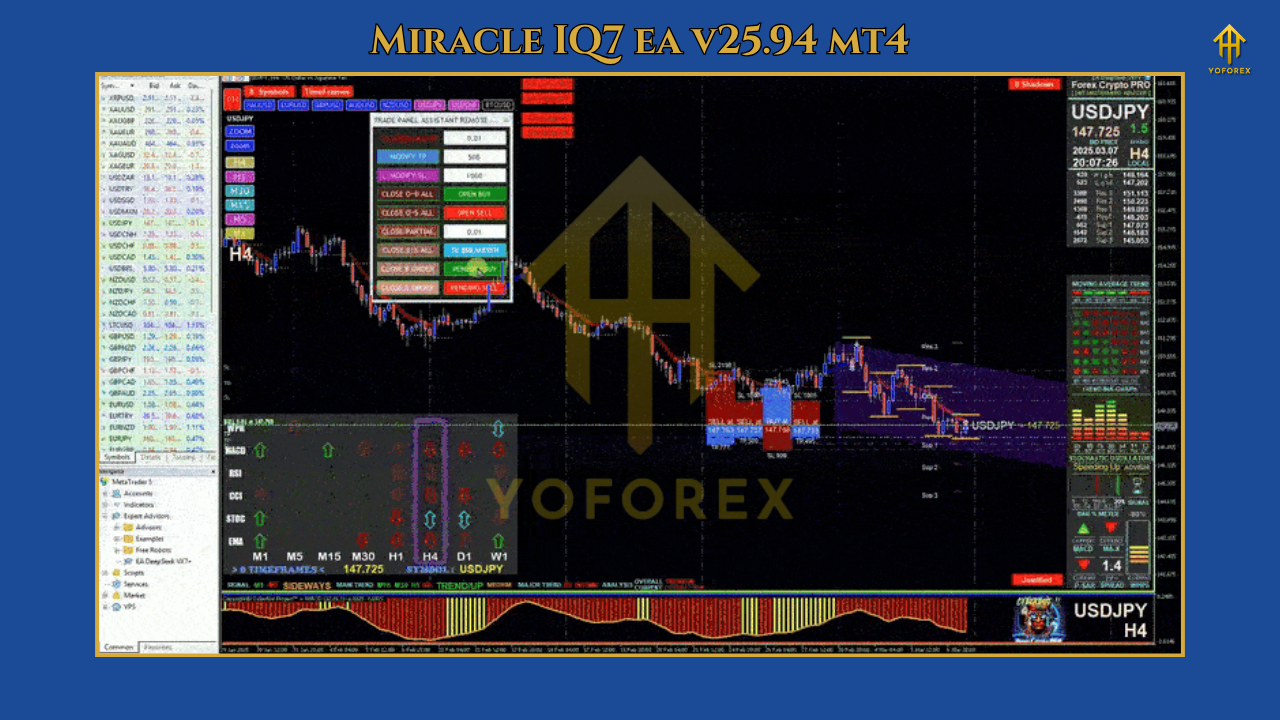 Miracle IQ7 EA V25.94 MT4 is an advanced automated trading system developed for the MetaTrader 4 platform. The EA uses AI-driven algorithms to analyze the forex market, identify trading signals, and execute buy/sell orders with optimal timing. It supports multiple trading strategies, including trend-following, scalping, and counter-trend trading.