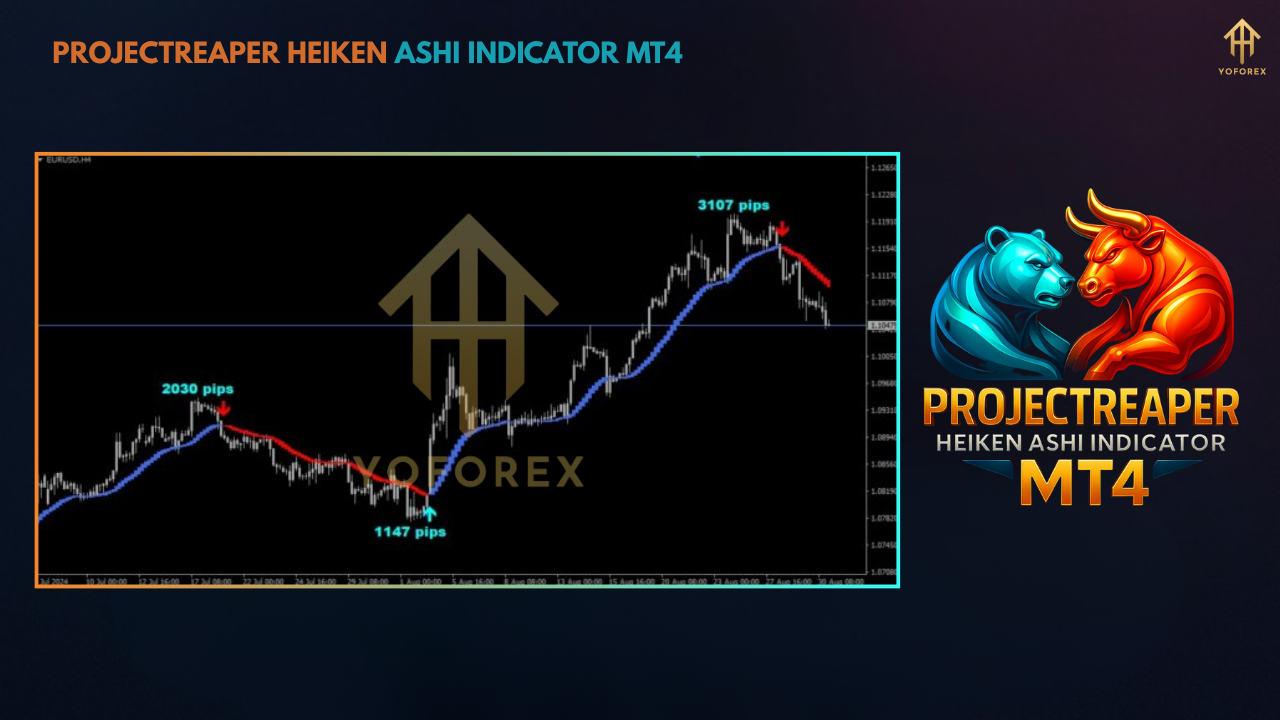 Sick of noisy price action that leaves you guessing direction? Say hello to the Projectreaper Heiken Ashi Indicator MT4, a 100% free ForexFactory indicator that smooths out candlesticks and highlights true market trends. Whether you’re a day trader staring at charts all day or a swing trader hunting for turnarounds, this MT4 tool helps you cut through the noise—no more whipsaws or repainting headaches. Built and rigorously tested by the YoForex team, it’s been deployed on live accounts worldwide with zero cost and lifetime updates. In this blog, we’ll cover what makes it tick, walk through live‐signal examples, show you how to install it in minutes, and explain why YoForex‐powered tools give you an edge. Ready to trade cleaner? Let’s dive in.