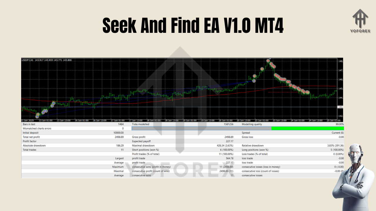 Seek And Find EA V1.0 MT4 is an automated forex trading robot that operates on the M15 to H1 timeframe range. It’s designed to work best with major currency pairs that offer tight spreads and consistent market behavior.