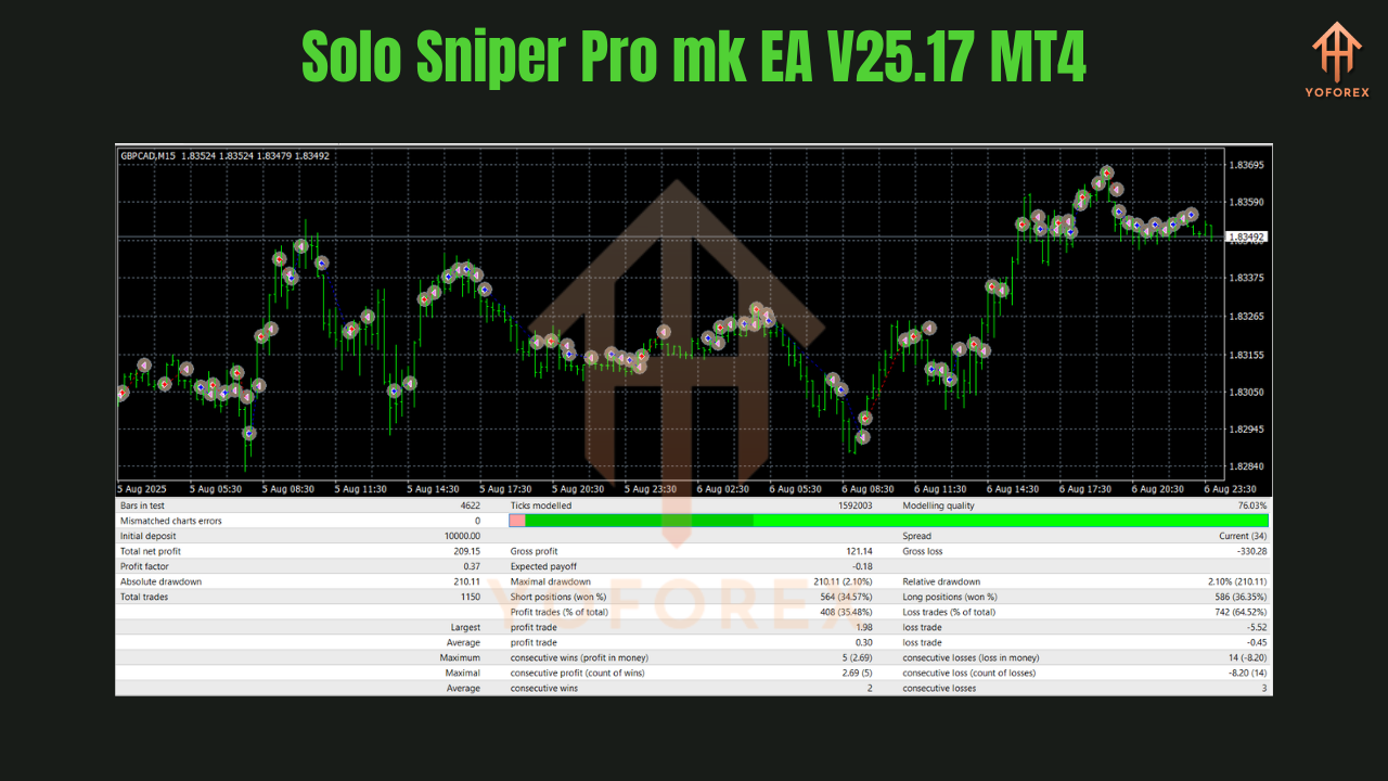 YoForex tested Solo Sniper Pro mk EA V25.17 MT4 over multiple years.