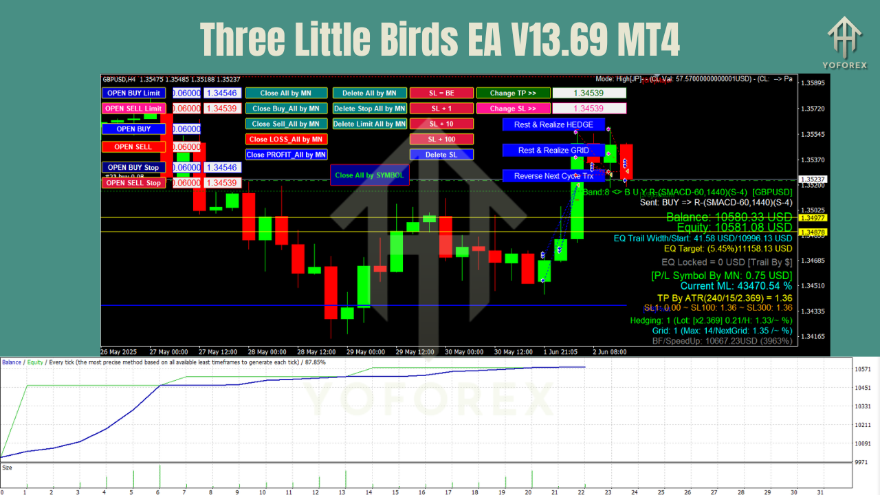 Released by YoForex and available 100% free on ForexFactory.cc, Three Little Birds V13.69 brings consistency, risk management, and multi-market adaptability under one roof.