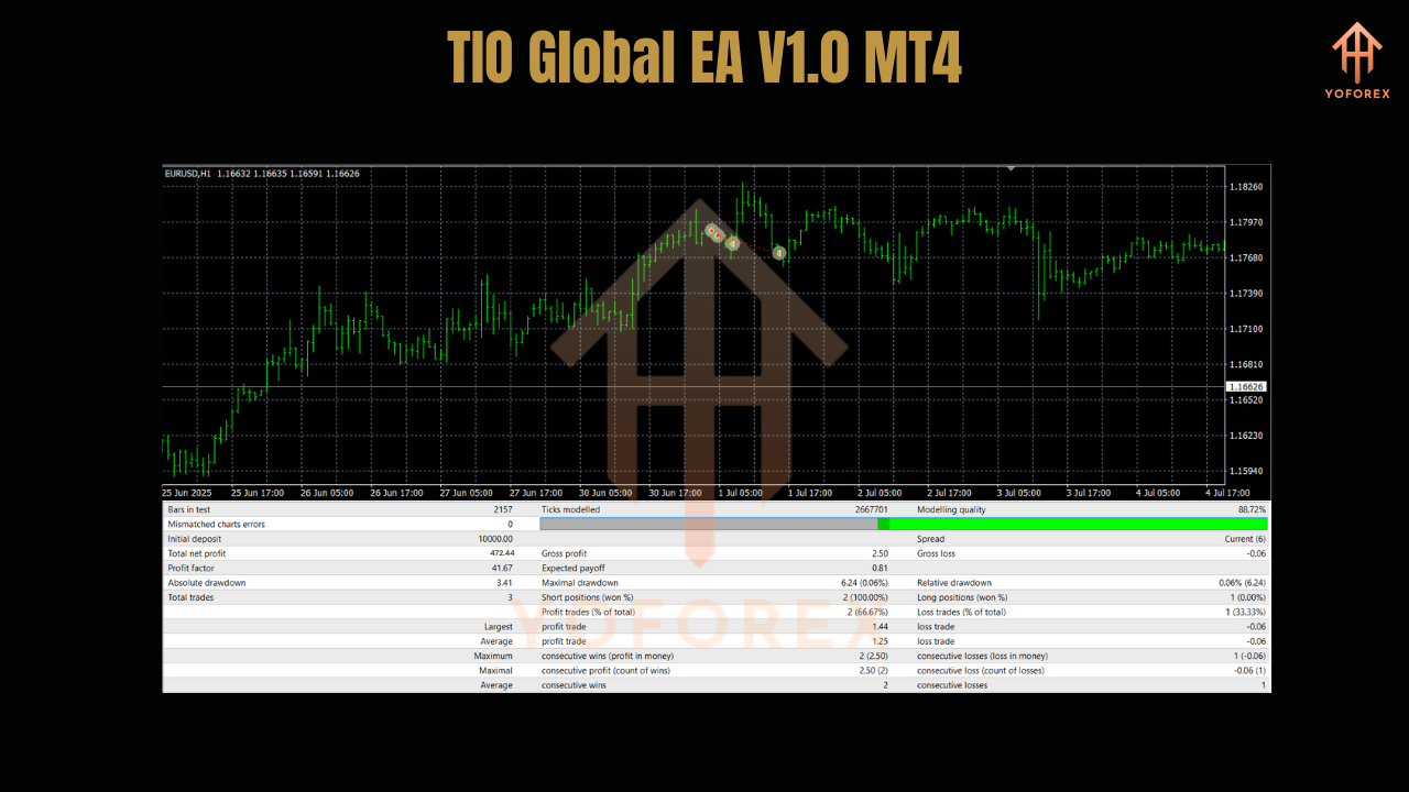 That’s why YoForex created the TIO Global EA V1.0 MT4. This expert advisor is designed to handle multiple currency pairs, adapt to different market sessions, and trade with a globally diversified strategy.
