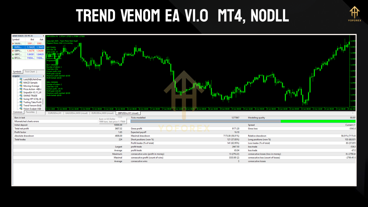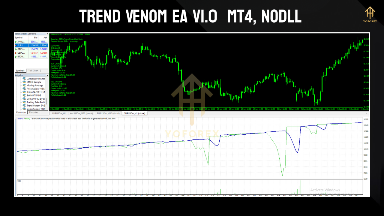Enter Trend Venom EA for MT4—a high-accuracy trend-following Expert Advisor designed to latch onto big moves and drain every pip possible before the reversal. Built for traders who love clean trends and minimal noise, this EA is perfect for majors, gold, and indices.