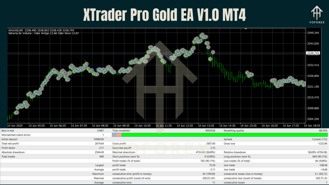 Gold trading can be one of the most profitable opportunities in forex… but it’s also one of the trickiest. XAUUSD moves fast, whips back unexpectedly, and can stop out even seasoned traders. If you’ve been looking for a way to trade gold with precision, discipline, and smart risk control, the XTrader Pro Gold EA V1.0 MT4 is about to become your new favorite tool.