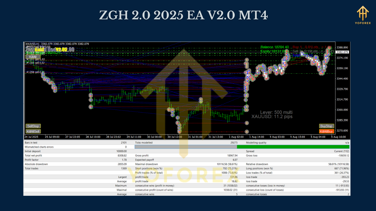 The ZGH 2.0 2025 EA V2.0 is an advanced MetaTrader 4 Expert Advisor crafted for gold (XAUUSD) on the H1 chart. It combines technical filters and trend logic to generate high-probability entries with controlled risk.