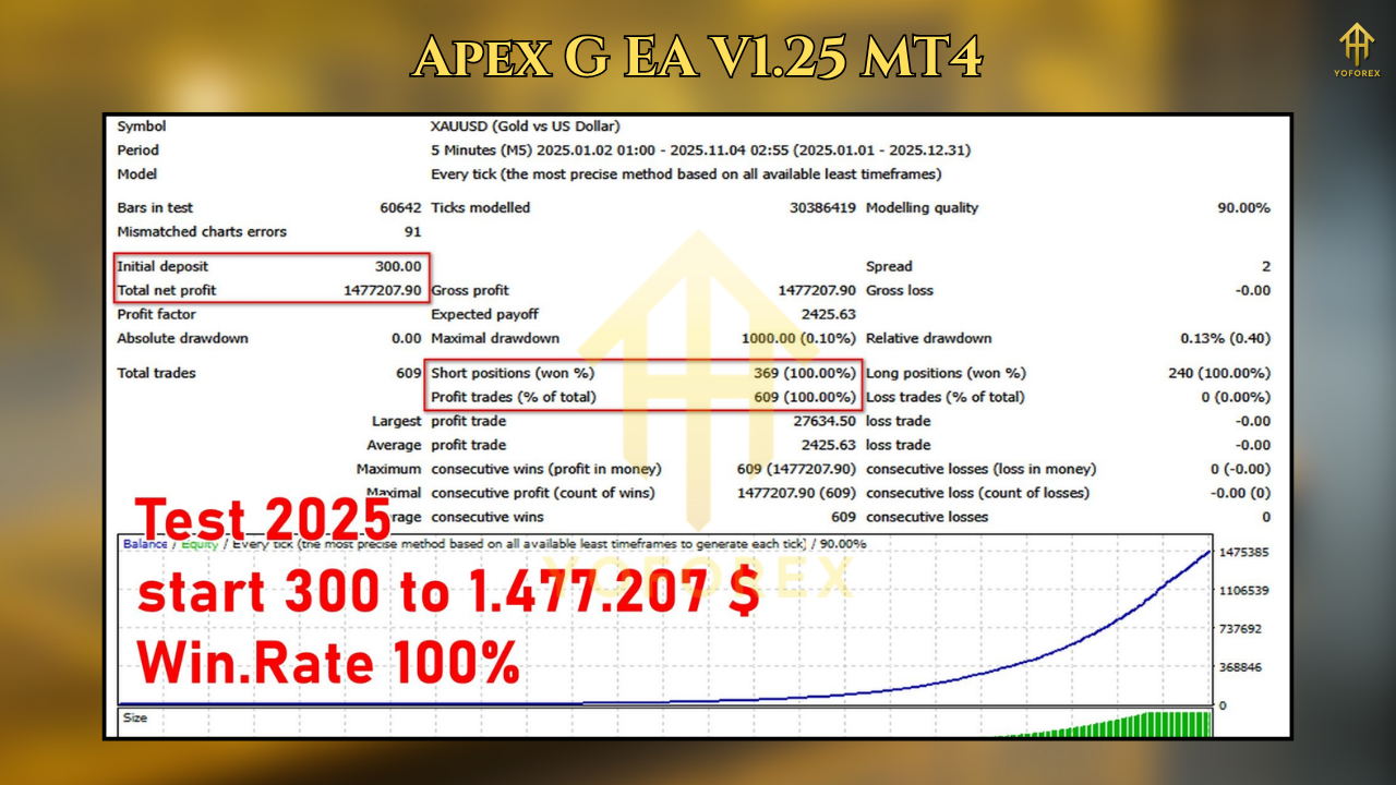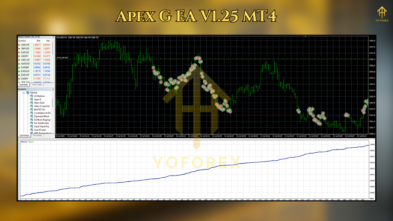 Download Apex G EA V1.25 MT4 now — 100% free on ForexFactory.cc. No strings, no license keys, just results-driven logic and free lifetime updates from YoForex.