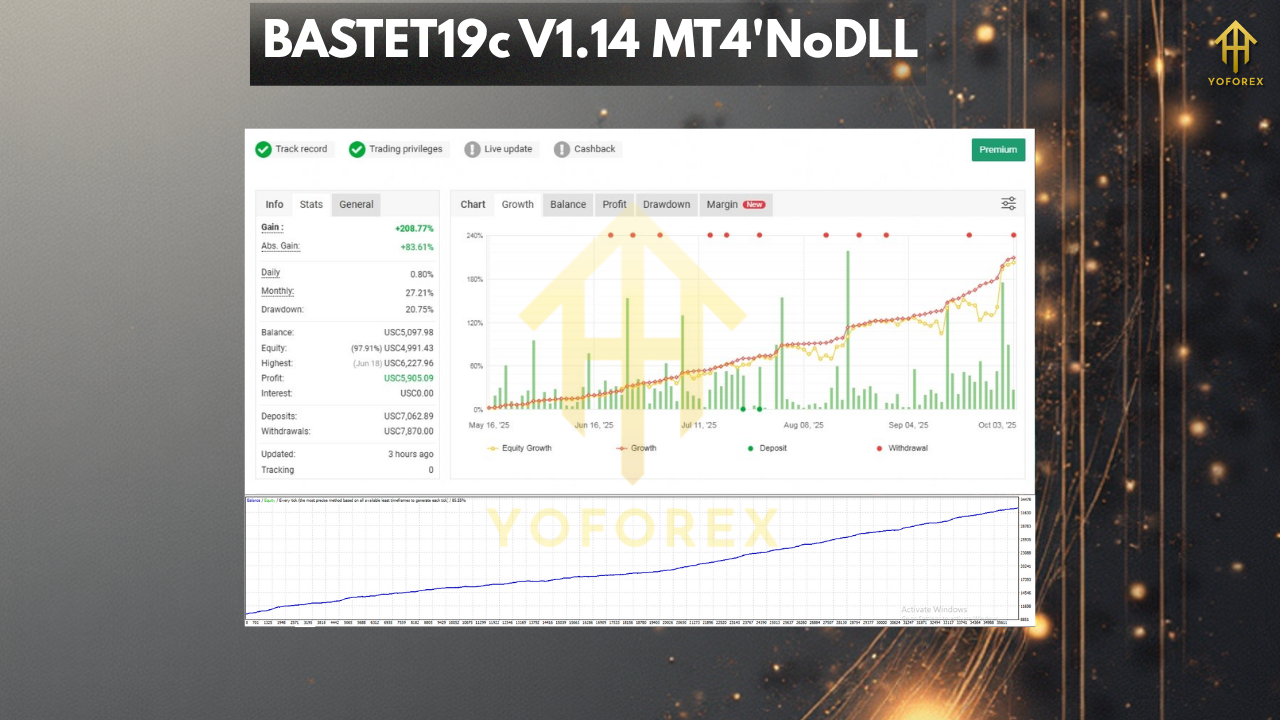 During backtesting, the EA has demonstrated an average win rate of 70%, with a maximum drawdown of around 20%. These results indicate that BASTET19c EA is a reliable tool for traders who prefer a more systematic, rule-based approach to trading.