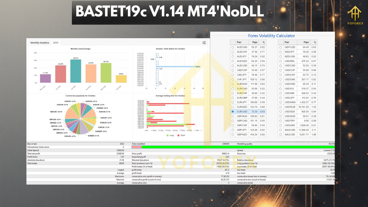 For traders seeking an automated solution to trade forex more effectively, BASTET19c EA V1.14 MT4 is an excellent choice that can help you take advantage of the forex market's volatility while minimising manual effort.
