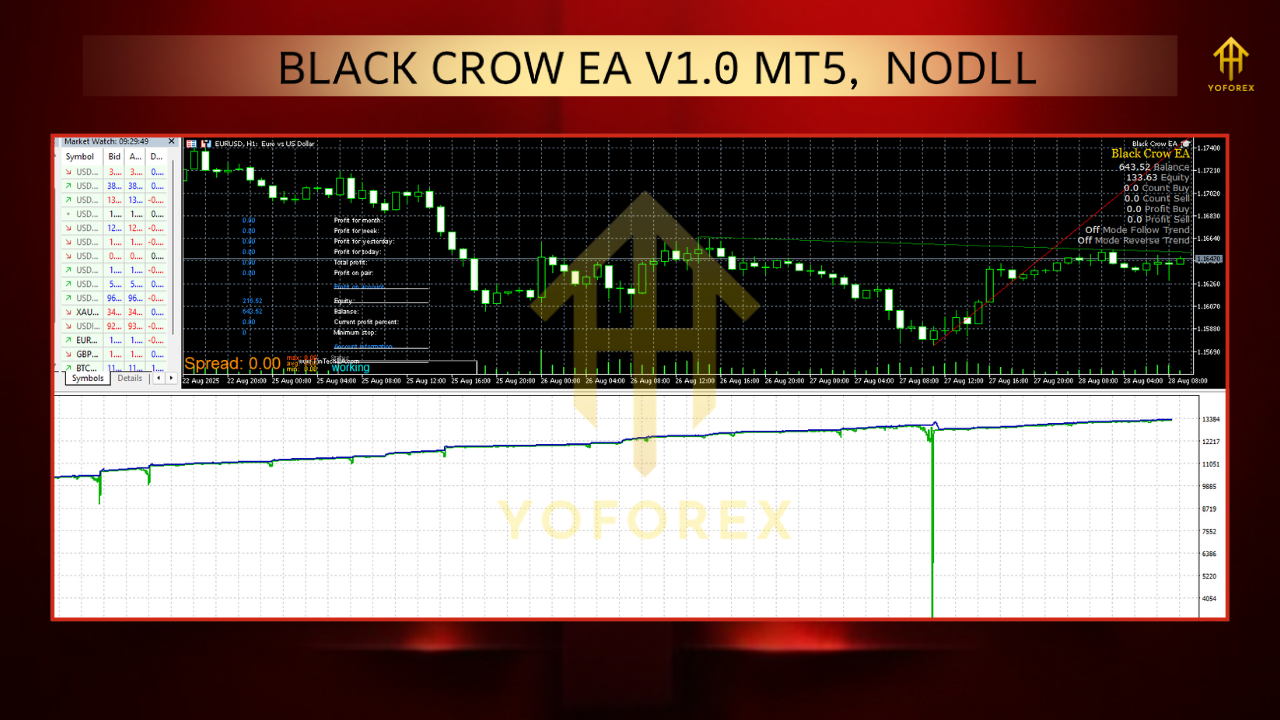 Markets often move in shadows—false rallies, hidden liquidity sweeps, sharp reversals. Black Crow EA v1.0 MT5 is designed to hunt those dark trend signals and ride them with discipline. Built by YoForex and available for free on ForexFactory.cc, this EA specializes in spotting bearish momentum shifts (hence the “Black Crow” name) while staying safe in bullish continuations.