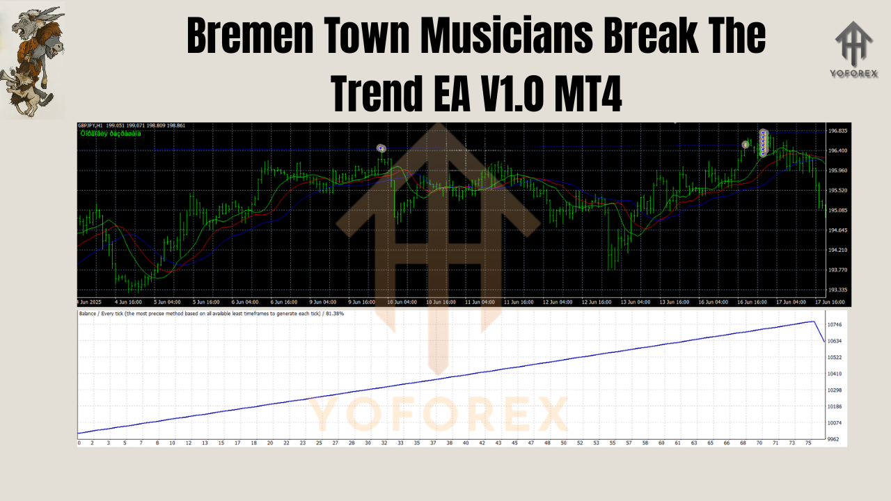 Bremen Town Musicians Break The Trend EA V1.0 MT4 is for traders who don’t blindly follow trends—they wait for the crack, then strike.