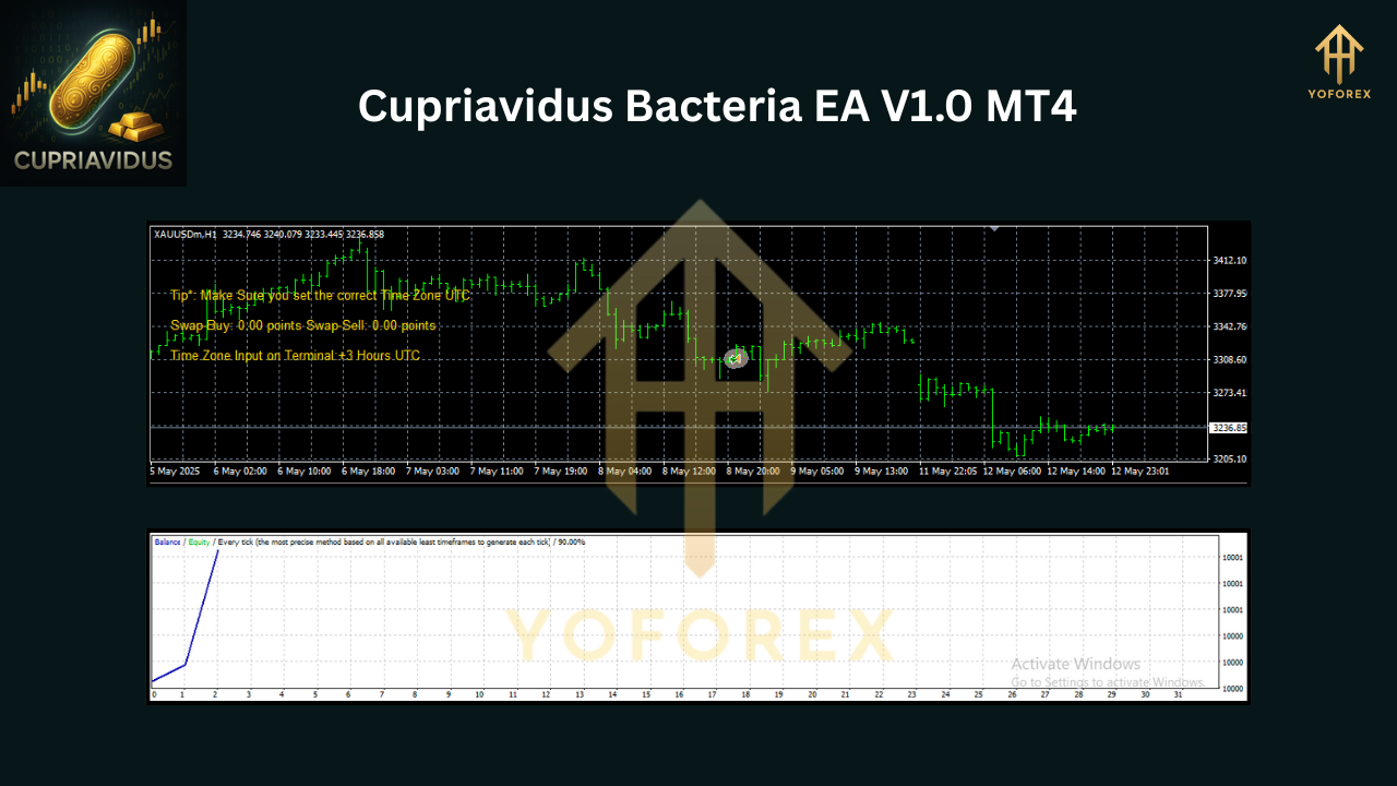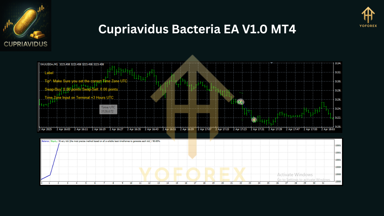 Meet Cupriavidus Bacteria EA V1.0, an MT4 Expert Advisor crafted by the YoForex team and optimized exclusively for gold trading (XAUUSD). It’s a time-based algorithm—not price action, not indicators, not martingale. Just pure, consistent logic based on timing the market like clockwork.