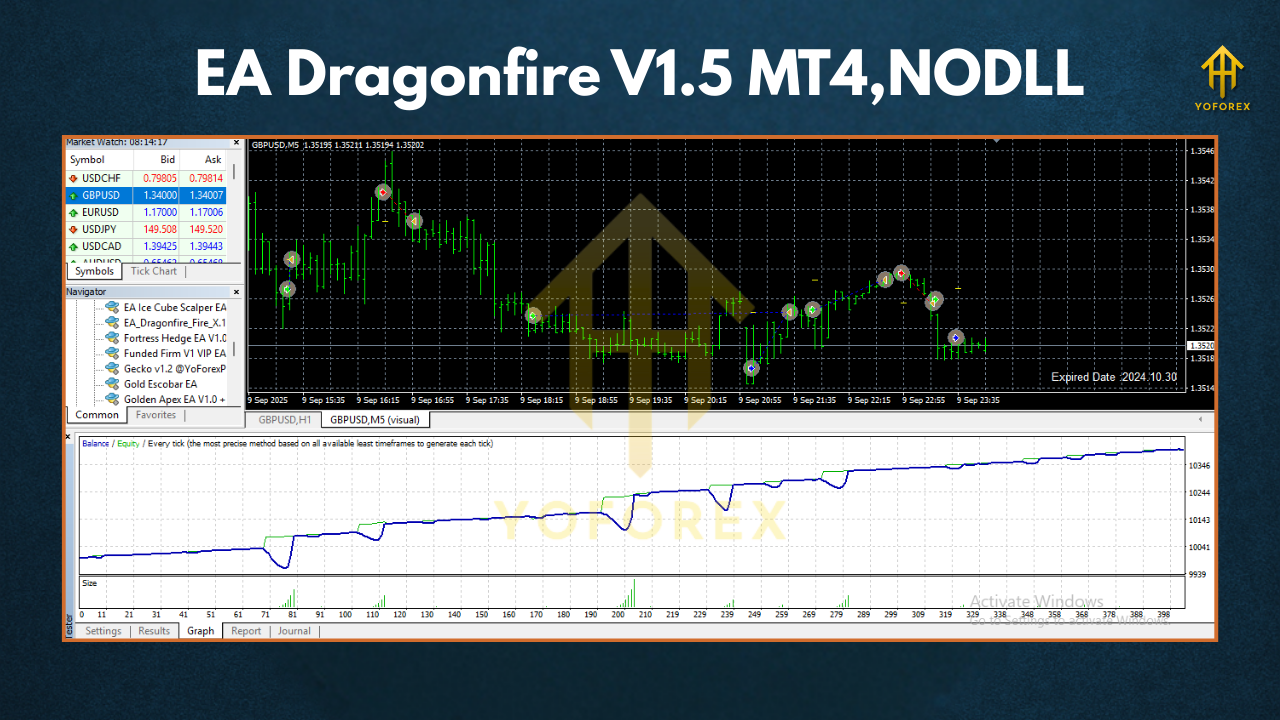 Backtests show that Dragonfire V1.5 delivers an average monthly growth between 7–12%, depending on broker conditions and risk settings. The EA maintained a drawdown under 10%, proving its stability.