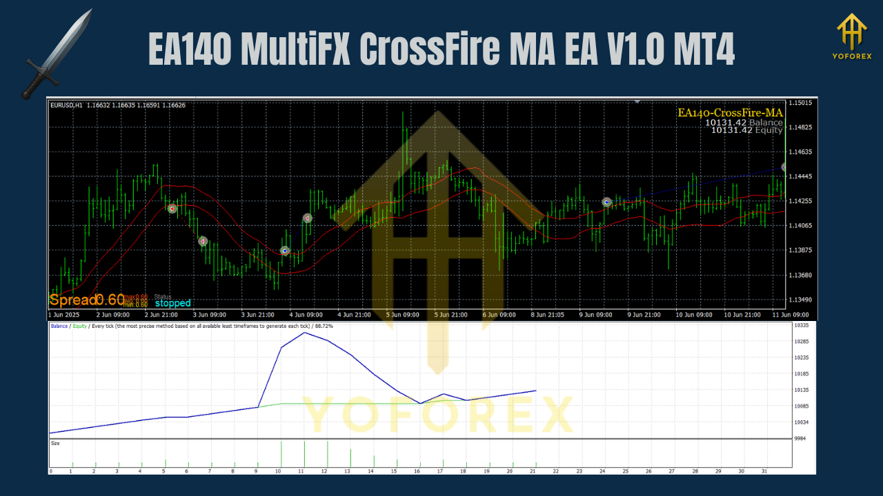That’s why YoForex introduced the EA140 MultiFX CrossFire MA EA V1.0 MT4 — a multi-currency Expert Advisor built to trade EURUSD and AUDUSD on the H1 timeframe using crossing moving average strategies.