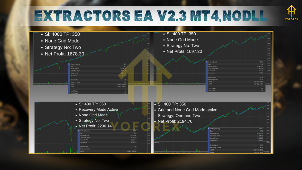 With Extractors EA V2.3, traders can rely on automated, algorithm-driven trading without worrying about missing trading opportunities due to market volatility. Its backtested strategies and real-time execution make it a reliable choice for maximizing trading success.
