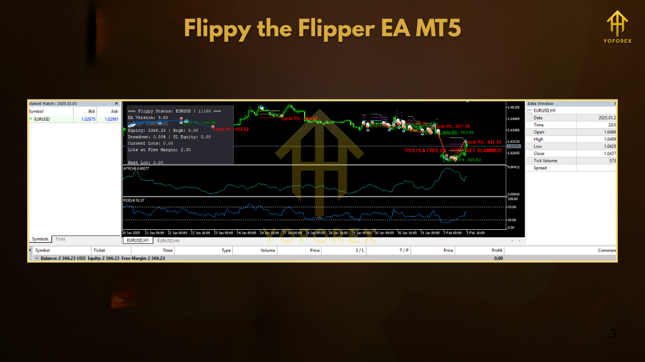 - Free Lifetime Updates: By downloading Flippy the Flipper EA, you’ll receive free lifetime updates and enhancements directly via ForexFactory.cc.