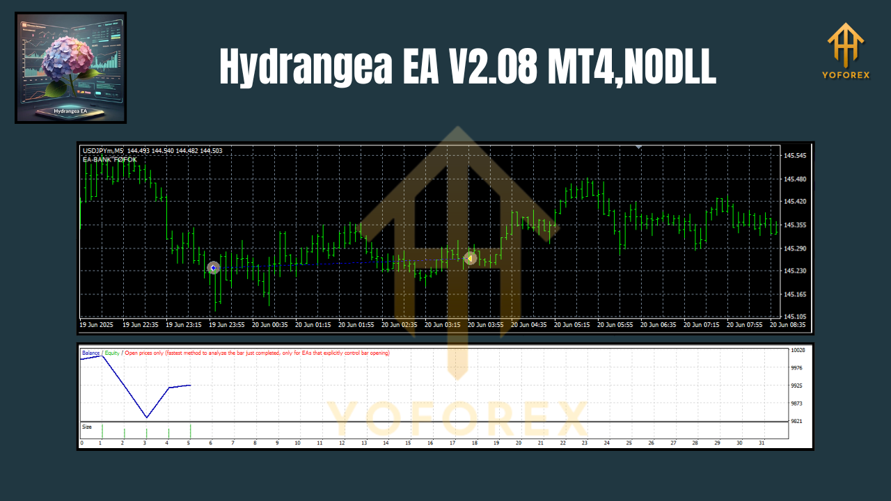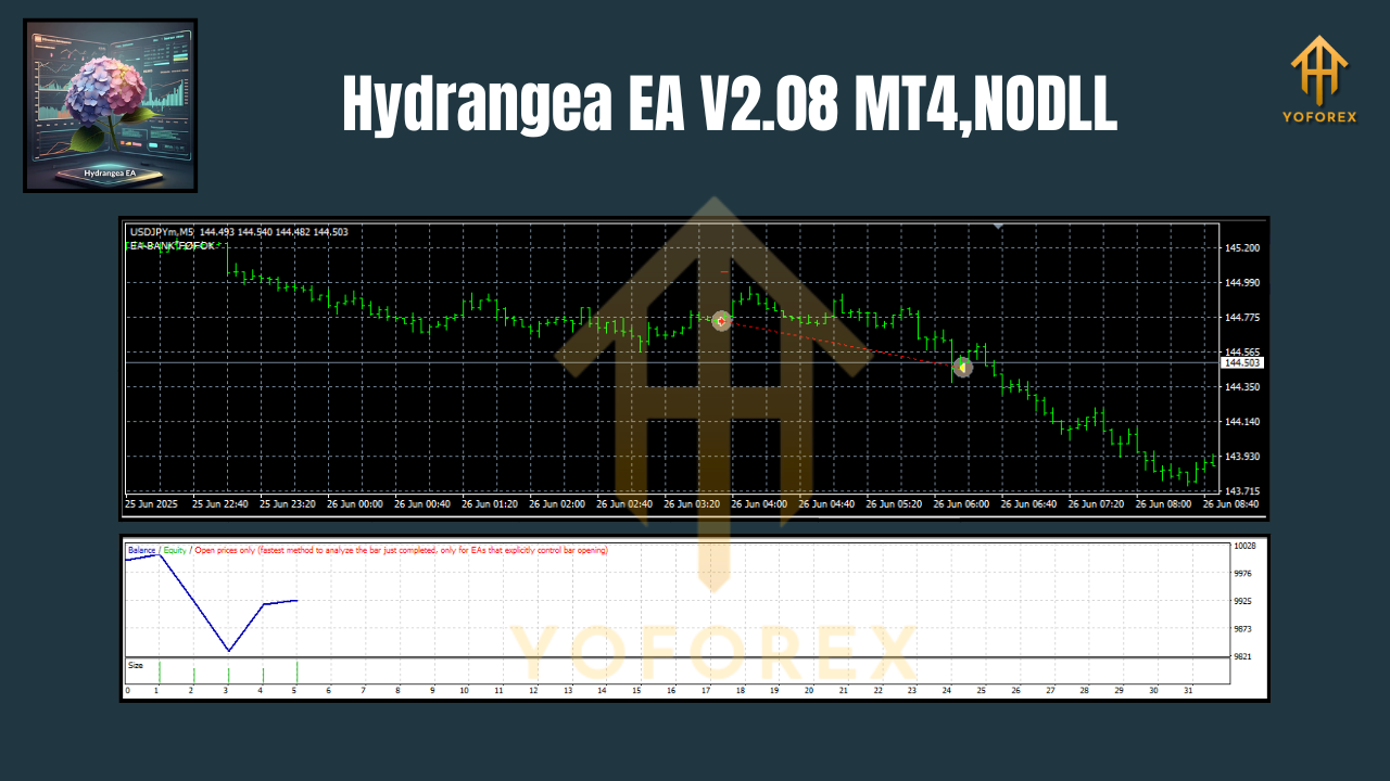 Tired of bots that promise the moon but drain your account faster than a Friday NFP candle? Say hello to Hydrangea EA V2.08 MT4. If you’re looking for a smart, no-BS scalping and day trading Expert Advisor tailored for USD/JPY on the M5 timeframe, this EA is your new best friend.