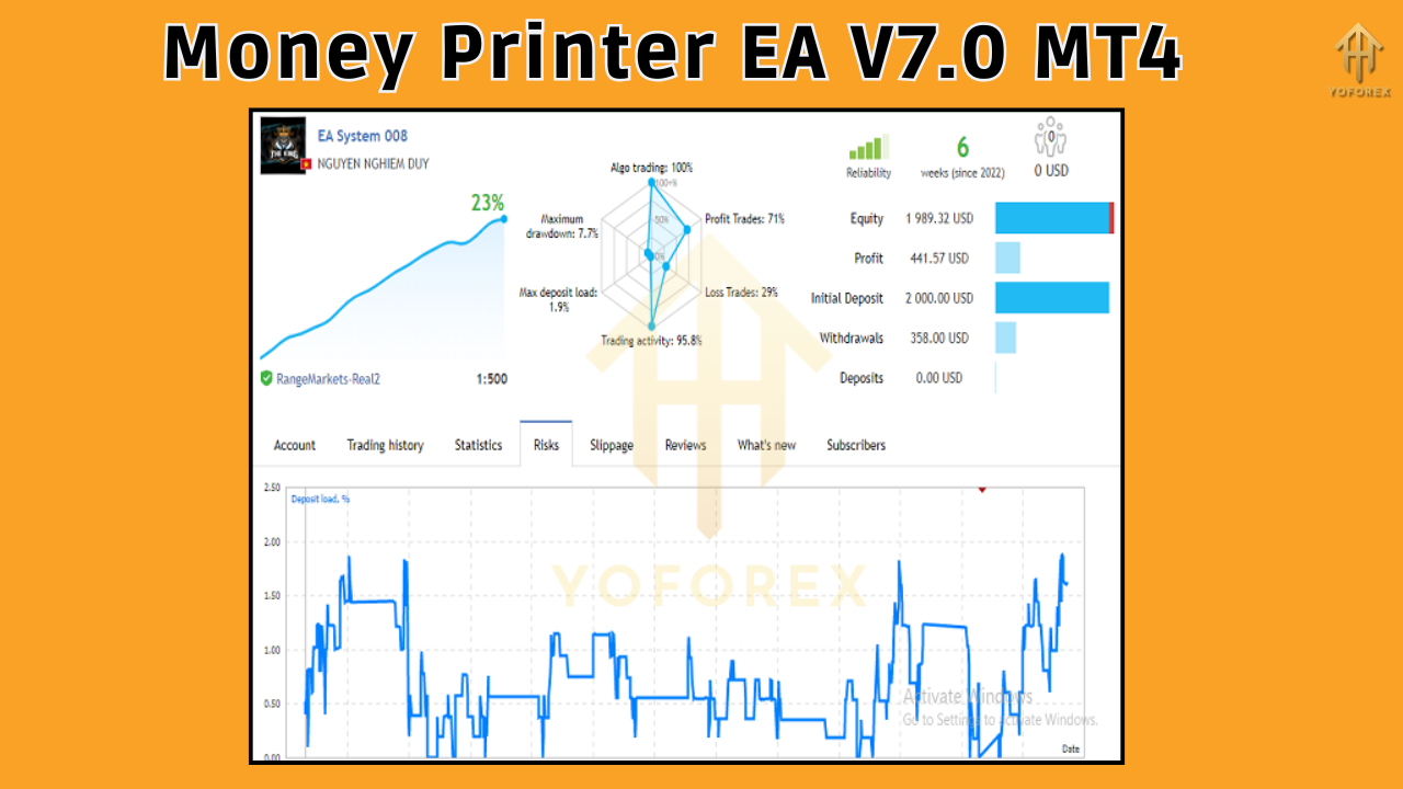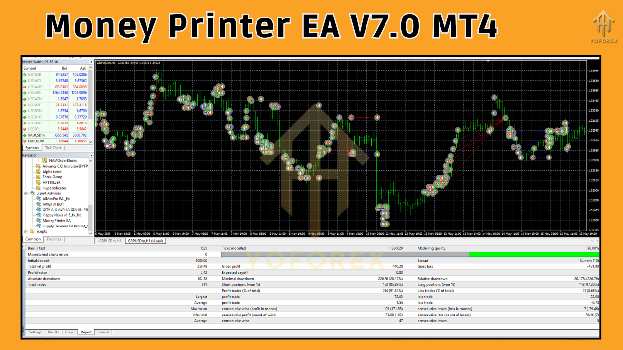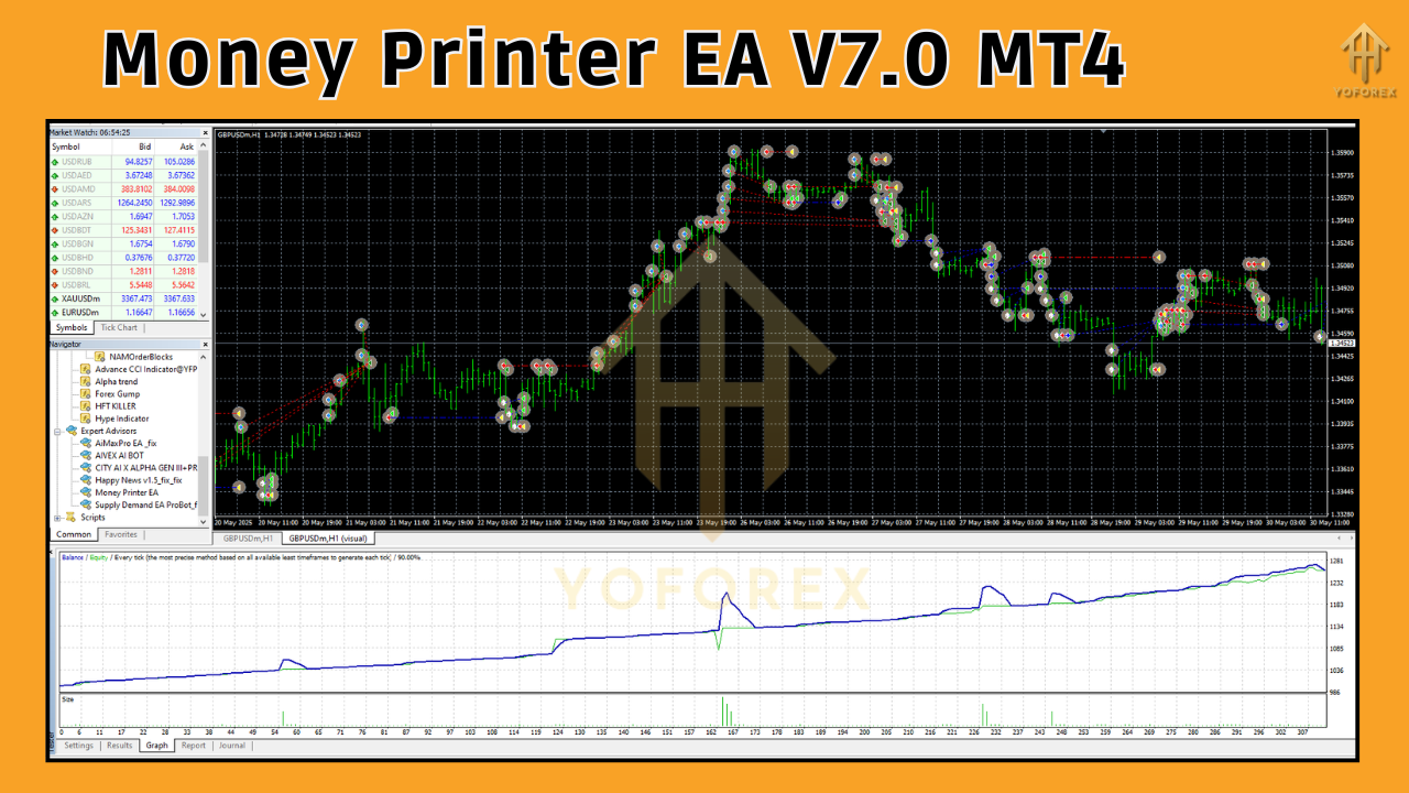 Money Printer EA V7.0 is the latest upgrade to the original YoForex Money Printer series, designed for MetaTrader 4. It’s built to work on major forex pairs (like EURUSD, GBPUSD, USDJPY), and it thrives best on M15 and H1 timeframes.