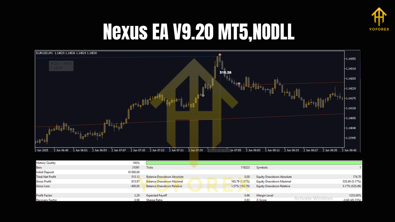 Most EAs lean on stacked indicators—moving averages, RSI, MACD, you name it. That can work, but it often lags when the market isn’t trending. Nexus EA V9.20 MT5 flips the script by focusing on simple mathematical relationships inside price movement: distance, velocity, dispersion, and proportional thresholds. In plain English, it measures how price is behaving right now and reacts accordingly. That’s why it tends to handle sideways conditions better than many indicator-heavy bots.