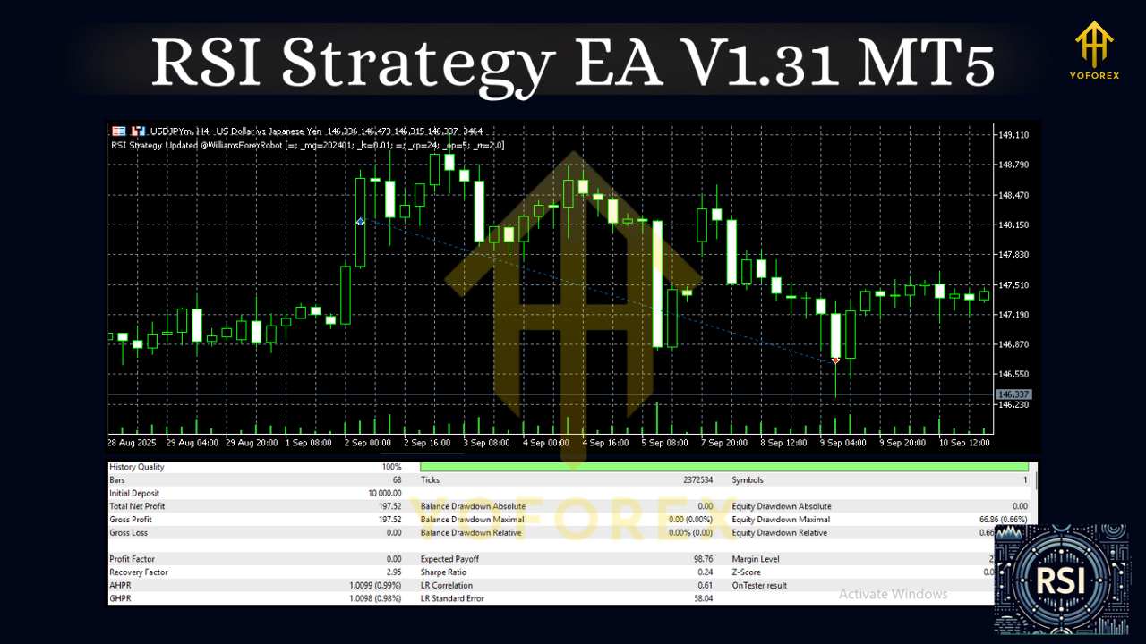 Who’s it for? Traders who like clarity. If you value defined signals, modest drawdowns, and clean exits over flashy “moonshot” strategies, RSI Strategy EA V1.31 MT5 will feel like home.