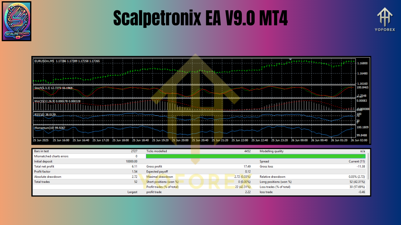 No EA can be trusted without results. The developers of Scalpetronix EA V9.0 have carried out extensive backtesting on multiple years of historical data as well as forward testing on live accounts.