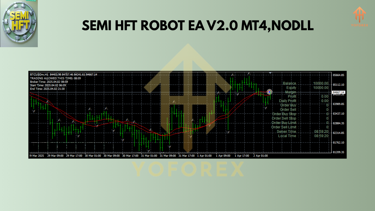 Sick of slow, sluggish EAs that barely break even? Tired of watching price tick away while your trades sit idle? SEMI HFT Robot EA V2.0 promises to change all that. Built for traders who crave speed but hate runaway risk, this MT4 Expert Advisor blends a semi-high-frequency approach with rock-solid money management…all without the drama of full HFT. Developed and stress-tested by the YoForex team, SEMI HFT EA V2.0 adapts to evolving markets, handles BTCUSD or XAUUSD on M1, and comes bundled with a ready-to-go setfile so you can hit “Start” immediately.