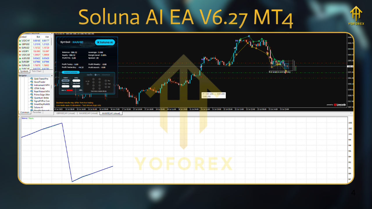 The heart of Soluna is its dual-regime logic: during trend phases it rides pullbacks; in chop it switches to mean-revert micro-targets with tighter stops. A volatility filter and session guard keep it out of low-liquidity traps. YoForex devs have fully back-tested and also run this version live across multiple brokers, then hardened the risk model based on real slippage and commission data. So you’re not just grabbing yet another backtest-only robot… you’re getting an AI-aided MT4 expert advisor that’s been used in the wild.