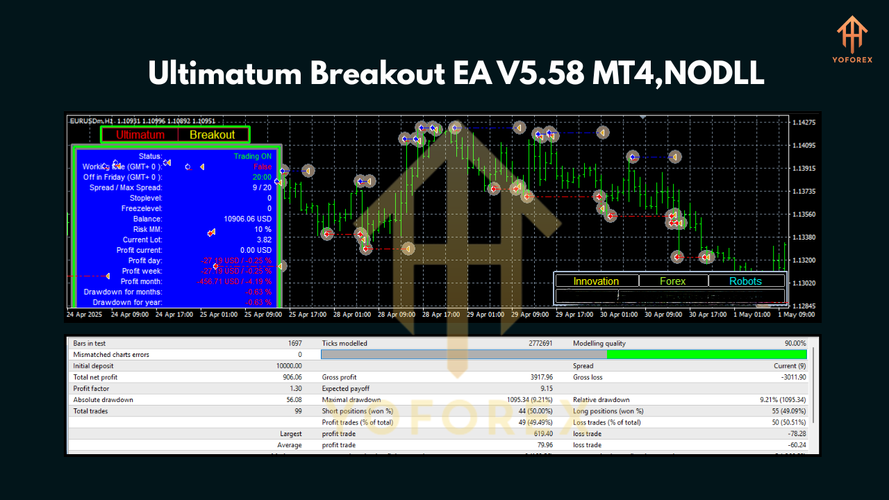 YoForex isn’t just another brand; we’re traders just like you. Every EA and indicator we host gets rigorous backtesting, live runs, and ongoing tweaks—100% free, always. You get lifetime updates, transparent performance reports, and a community that shares insights daily. Check out our Newest EAs or browse the Indicator section to see what’s hot. We’re committed to empowering traders worldwide, and Ultimatum Breakout EA V5.58 MT4 is no exception.